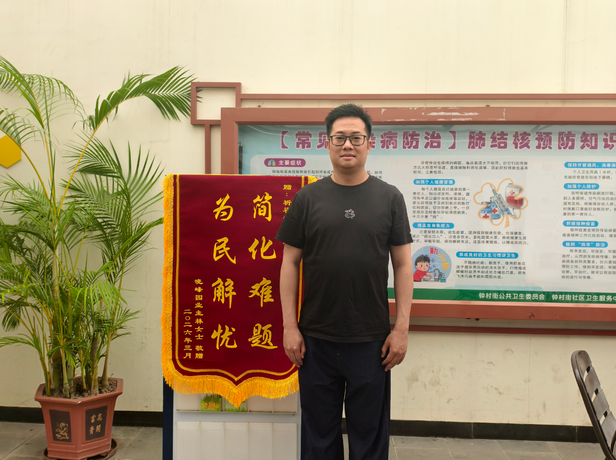 一面锦旗,一份认可,一句赞誉,承载着居民对社区工作的满满信任。近日,祈福新邨辖区居民将一面印有“简化难题,为民解忧”的锦旗送到社区工作者简智朗手中,感谢他秉持初心、耐心周旋,成功化解两起棘手邻里渗水纠纷,用实干担当守护邻里和谐。作为基层社区工作者,也是一名党员,简智朗扎根一线、默默奉献,用脚步丈量民情,用真心化解矛盾,以实际行动践行新时代社区工作者的责任与担当,让邻里更和睦、社区更温暖。